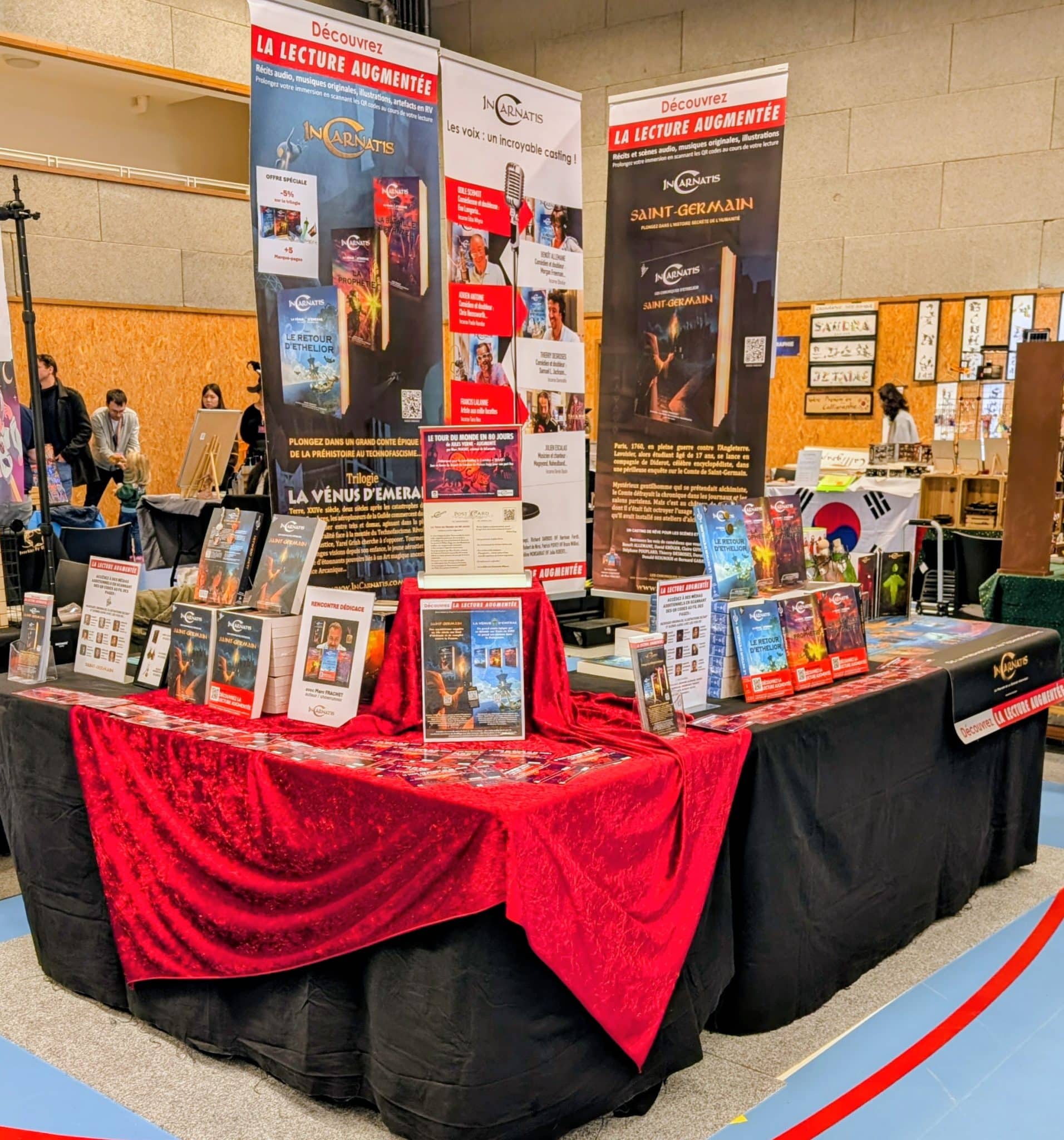 Un stand enchanteur, dévoilant des livres de fantasy et des illustrations immersives tirés de l’univers d’Esteryon. Une invitation à plonger dans un monde riche en magie, aventures épiques et créations visuelles captivantes.