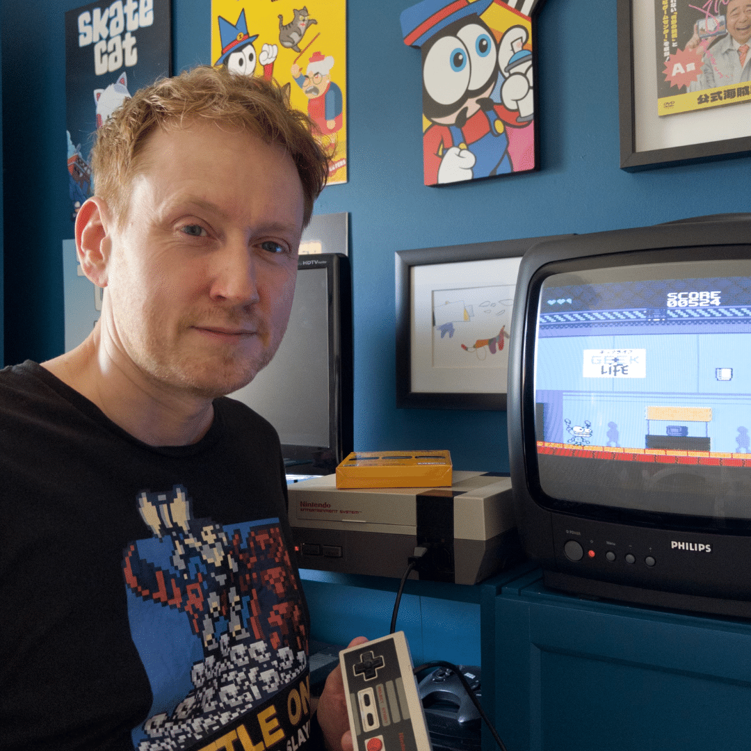 Développeur passionné et figure de la scène homebrew, Dale Coop redonne vie à la légendaire NES avec des créations 8-bit pleines d’ingéniosité. Entre contraintes techniques et liberté créative, il imagine des jeux au charme résolument rétro comme Chibi Monster Brawl, ZDey The Game, Dungeons & DoomKnights ou SkateCat.