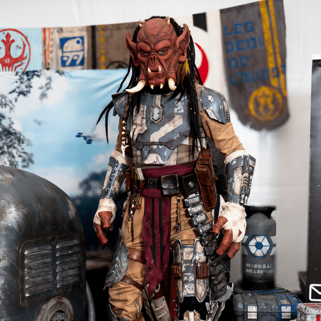Sous son impressionnant costume de Mandalorien, il incarne tout l’esprit de la saga, entre rigueur, immersion et amour du détail.